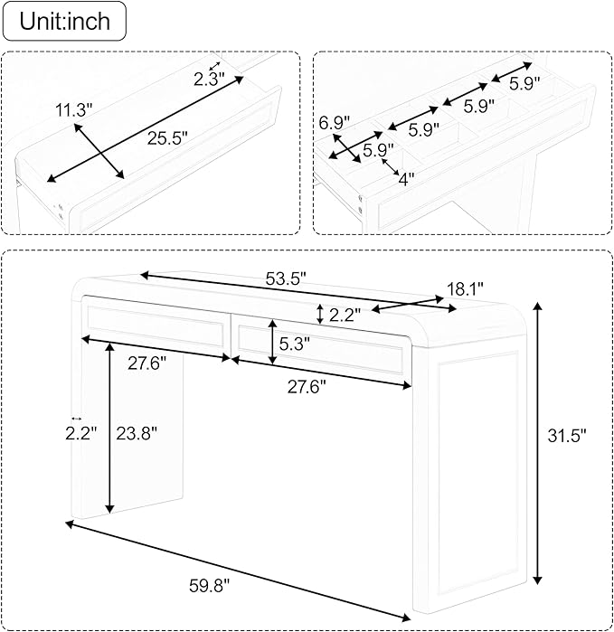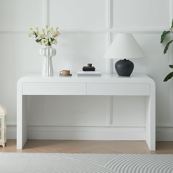 Merax 60" Entryway Console Table with Storage, 2 Drawers with Functional Divider/Retro Curved Design/Behind Couch & Sofa, White