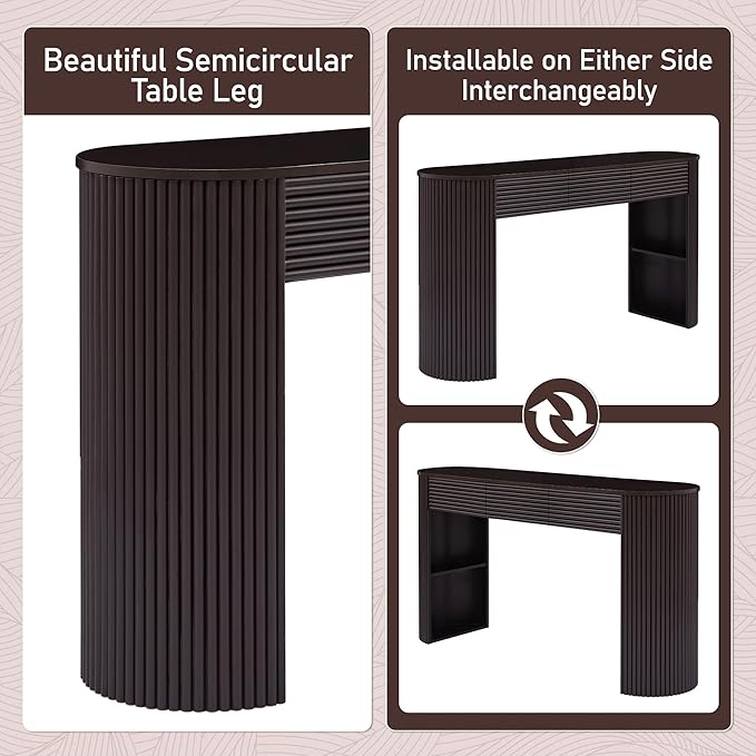 Merax Modern Retro Entryway Table, Rounded Console Table with3 Drawers and Open Hidden Storage for Living Room, Hallway and Office, Espresso