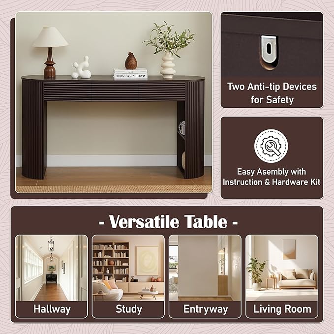 - 【Hassle - Free Assembly & Safety】Comes with a clear, step - by - step installation manual and all necessary hardware. Even if you’re not handy, you can assemble it quickly and effortlessly. Includes two Anti - Tip Devices to secure the table to the wall, preventing tipping and ensuring peace of mind – especially valuable in homes with kids or pets.