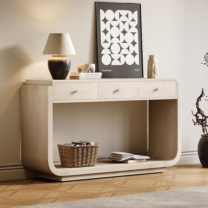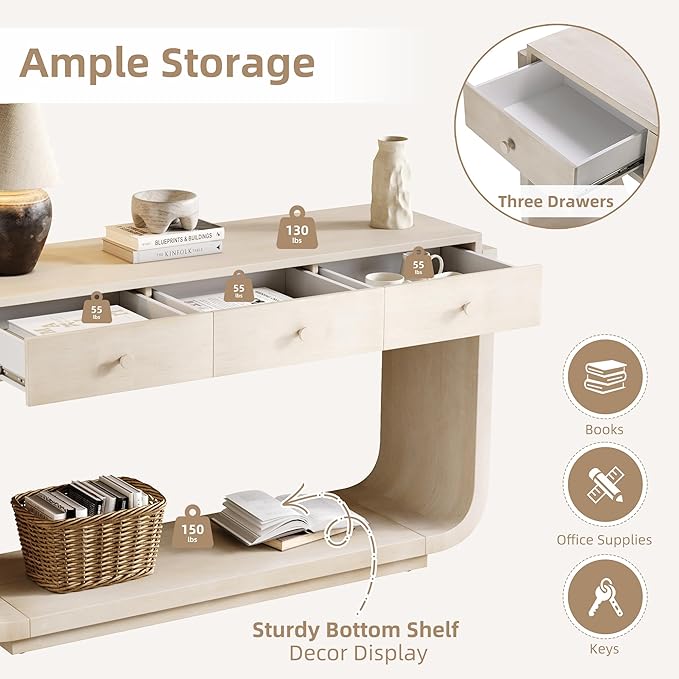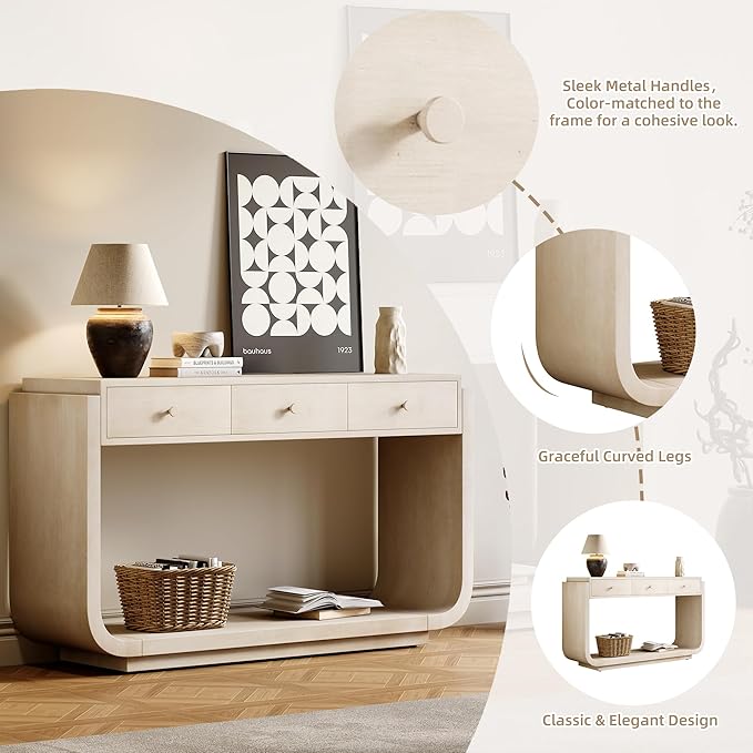 - 【Elegant Curved Legs】The table legs feature a beautiful curved design, adding an elegant and classic element to the table, making it a standout decor piece in your home. Equipped with 3 drawers, it provides sufficient storage capacity. Perfect for organizing books, office supplies, keys, and small household items, keeping your space neat and tidy.