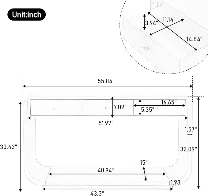 - Product Dimensions : 15"D x 55.04"W x 32.09"H