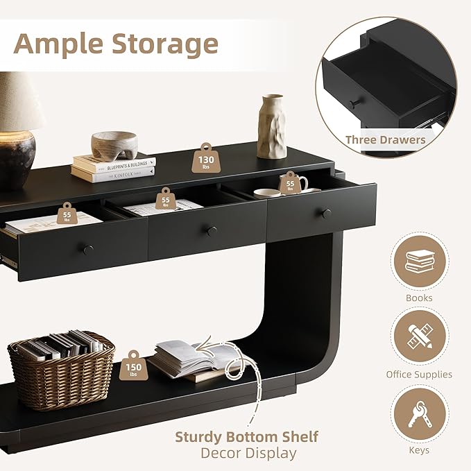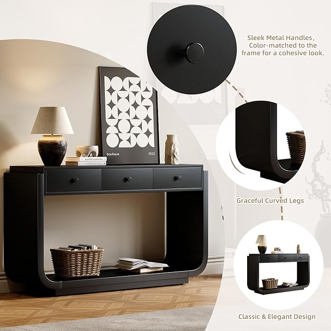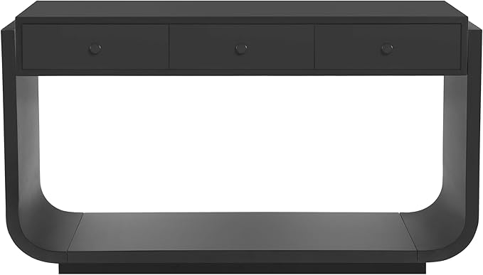 Merax 55" Entryway Table with 3 Drawers, Natural Wood Grain Finish Console Table with Fluted Design for Entryway and Living Room (Black)