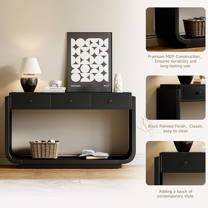- 【Versatile Modern/Retro Style】The bold black finish complements both modern, industrial spaces and retro-inspired decors, making it a flexible addition to living rooms, entryways, or studies. Coated with a smooth, scratch-resistant black paint that delivers a modern, bold aesthetic. Easy to wipe clean and maintain, perfect for high-traffic areas.