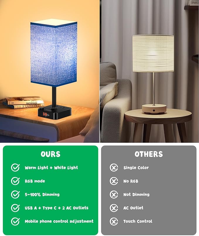 - Convenient Charging Station – This multi color lamp doubles as a functional hub with 2 USB ports and 2 AC outlets. Charge phones, laptops, and tablets easily, even with the lamp off. Ideal for bedside tables and home offices, this rgb desk lamp reduces clutter while powering your essentials.