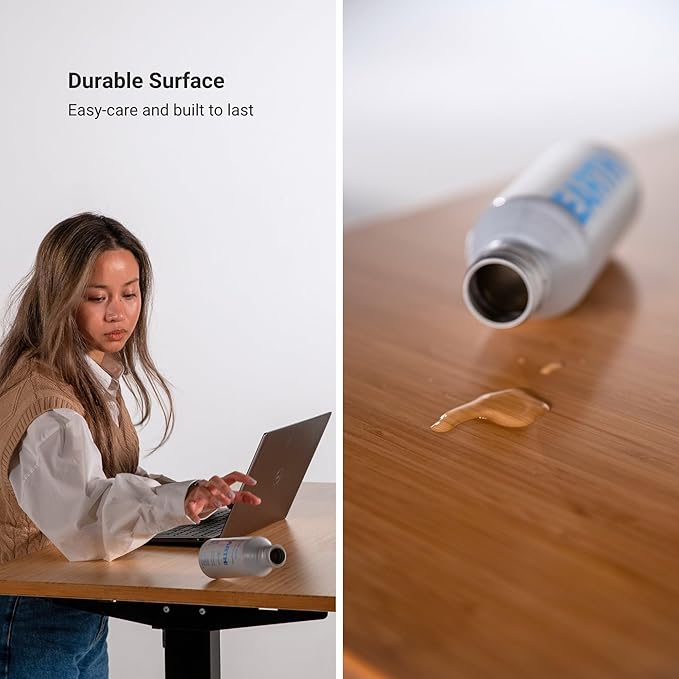 - EASY-CARE LAMINATE TABLETOPS: Choose from a variety of easy-care laminate tabletop options for a sleek and durable surface; Our wood desk available in various colors, these tabletops add a modern and professional look to your workspace, enduring daily use; Whether you need an office table, gamer desk, executive desk, student desk, school desk, or writing desk, we engineered our ergonomic rising desk to meet various needs, providing a functional and stylish solution for any environment