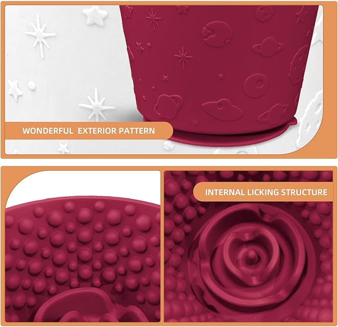 - VERSATILE DESIGN: Silicone lick bowl with spiral and textured surface pattern, perfect for dispensing soft treats like peanut butter, yogurt, or canned foodVERSATILE DESIGN: Silicone lick bowl with spiral and textured surface pattern, perfect for dispensing soft treats like peanut butter, yogurt, or canned food