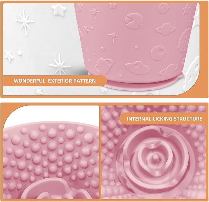 - VERSATILE DESIGN: Silicone lick bowl with spiral and textured surface pattern, perfect for dispensing soft treats like peanut butter, yogurt, or canned foodVERSATILE DESIGN: Silicone lick bowl with spiral and textured surface pattern, perfect for dispensing soft treats like peanut butter, yogurt, or canned food