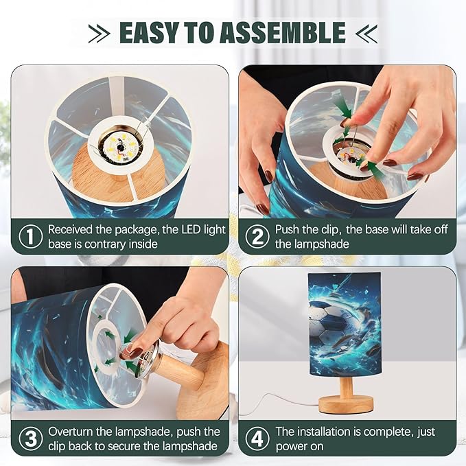 - Size & Installation: Personalized desk lamp is easy to assemble and use, stylish linen fabric lampshade, wooden base, LED light (bulb not included), 5.12"D x 5.12"W x 9.7"H