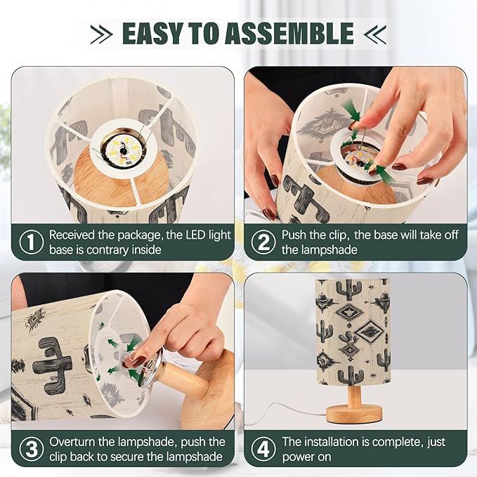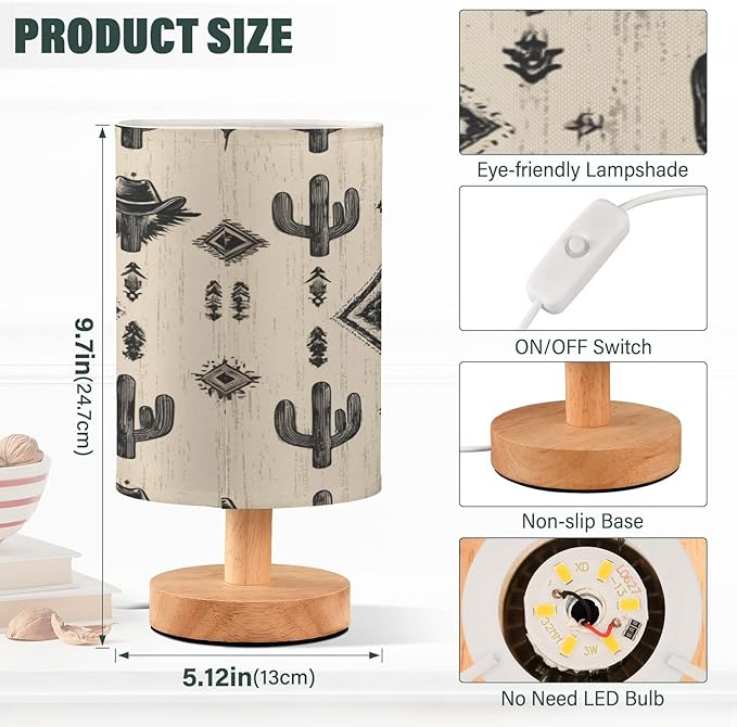 - Size & Installation: Personalized desk lamp is easy to assemble and use, stylish linen fabric lampshade, wooden base, LED light (bulb not included), 5.12"D x 5.12"W x 9.7"H