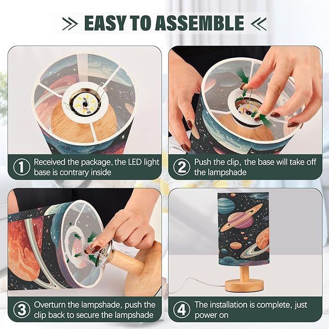 - Size & Installation: Personalized desk lamp is easy to assemble and use, stylish linen fabric lampshade, wooden base, LED light (bulb not included), 5.12"D x 5.12"W x 9.7"H