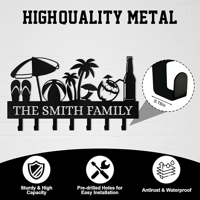 - 【Tropical Beach Design】Our key hooks can be customized with names or special messages. This unique key holder features elements such as sunsets, coconut trees, and parasols, evoking the natural and comfortable tropical scenery and bringing a relaxed and pleasant atmosphere to your home.