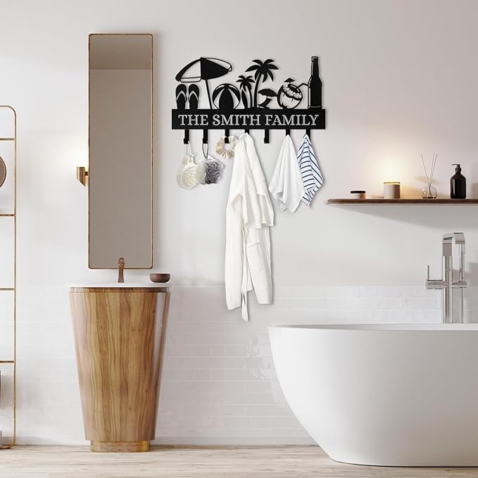 Personalized Key Holder for Wall, Beach Theme Key Holder Wall Mount with Hooks, Coconut Trees Key Hanger Wall Decor for Pool Bathroom Hallway Entryway Office, Customized Home Decor Gifts Color04