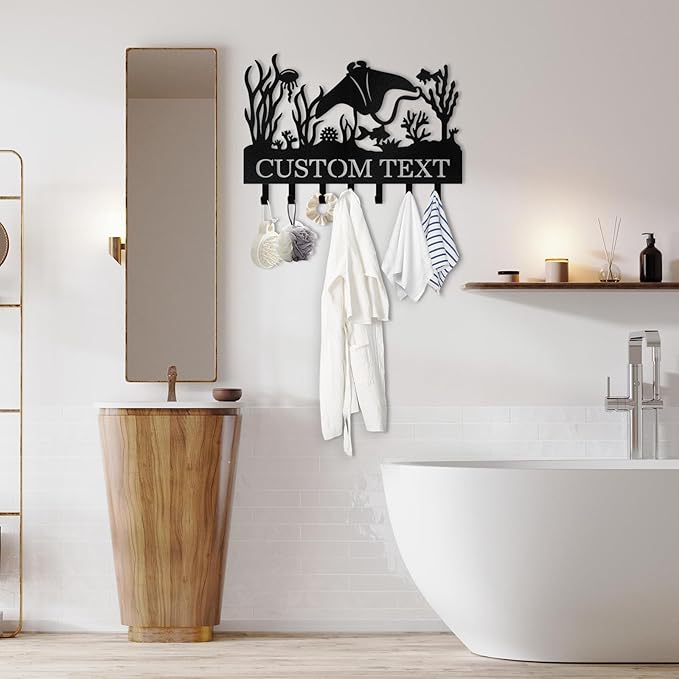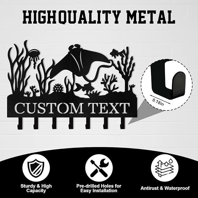 Personalized Key Holder for Wall, Beach Theme Key Holder Wall Mount with Hooks, Tropical Style Key Hanger Wall Decor for Pool Bathroom Hallway Entryway Office, Customized Home Decor Gifts Color01