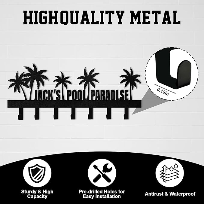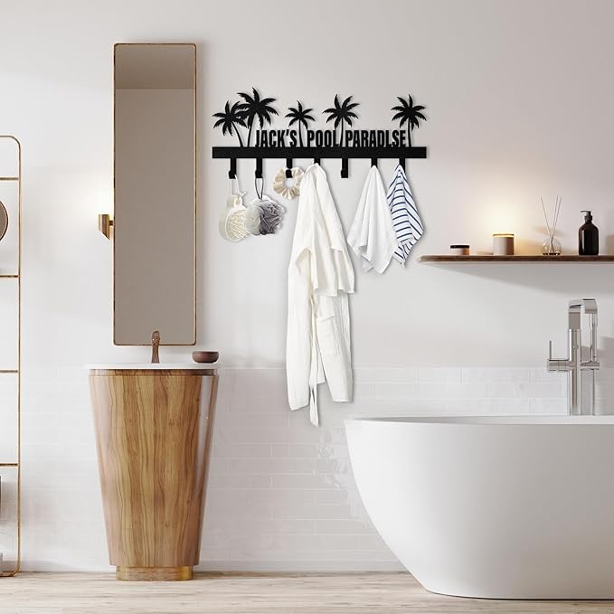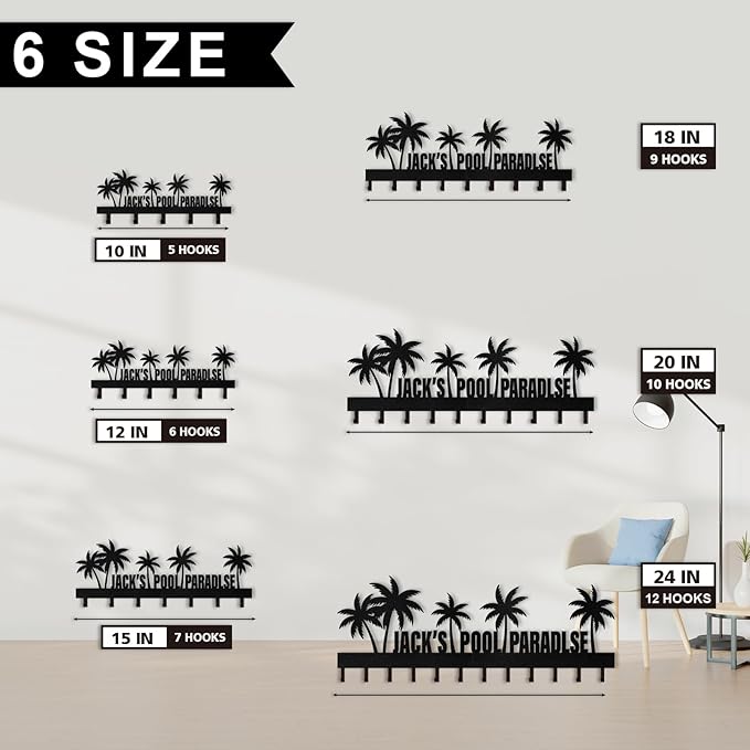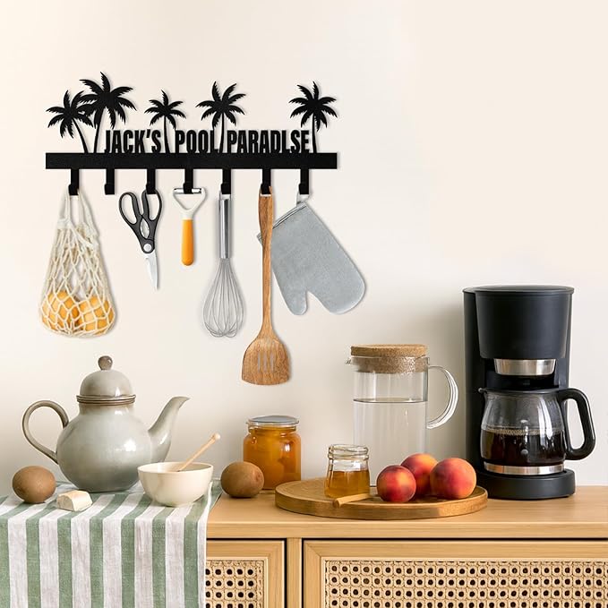 Personalized Key Holder for Wall, Beach Theme Key Holder Wall Mount with Hooks, Coconut Trees Key Hanger Wall Decor for Pool Bathroom Hallway Entryway Office, Customized Home Decor Gifts Color08