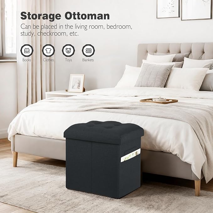 - 【Easy to Set Up & Fold Up】Set up this ottoman with storage in seconds by inserting the bottom panel. The foldable design allows you to easily put them away for more space when not in use.