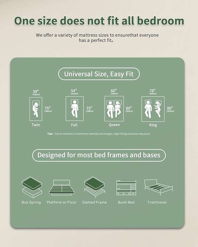 - 【Noiseless & Motion-Isolating】Not just for beds! Fits dorms, guest rooms—anywhere you need comfy sleep! The noise-free coils won't squeak when you move. Plus, the motion isolation means no more waking up when your partner tosses and turns. Sleep like a baby, anywhere!