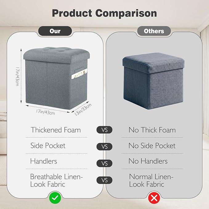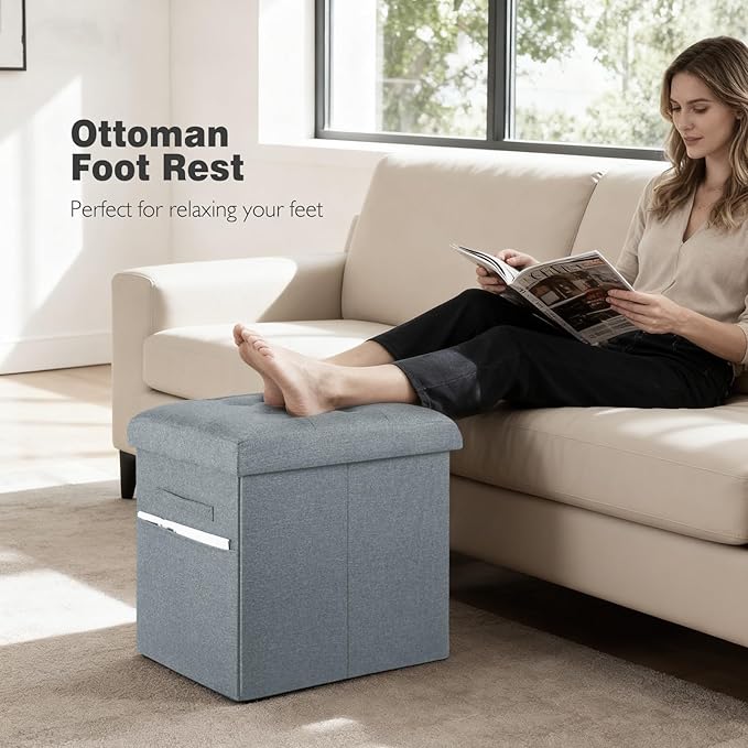 - 【Easy to Set Up & Fold Up】Set up this ottoman with storage in seconds by inserting the bottom panel. The foldable design allows you to easily put them away for more space when not in use.