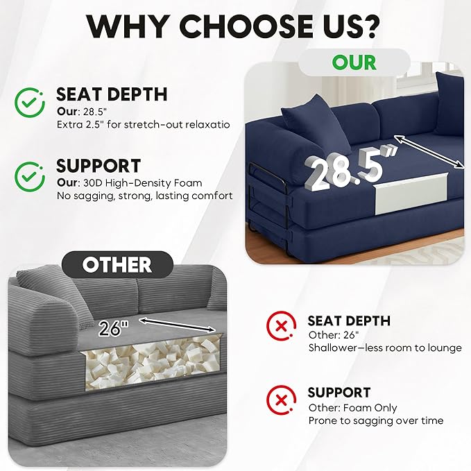 - No-Assembly Ease, Instant Gratification: Skip tools and frustration. Unpack this modular sofa bed, fluff components gently, and let resilient foam revive fully in 72 hours—ready as a chic pull-out couch or compact androf sofa bed without effort.