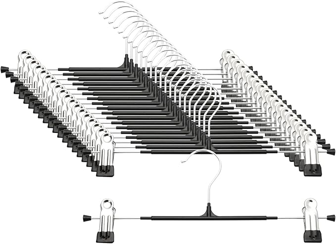 - gofuch Pants Hangers with Clips,20 Pack Adjustable Skirt Hanger for Men Women Kids Non-Slip Trousers Hanger for Trousers, Jeans Clothes ,Shorts BLACK,12Inch