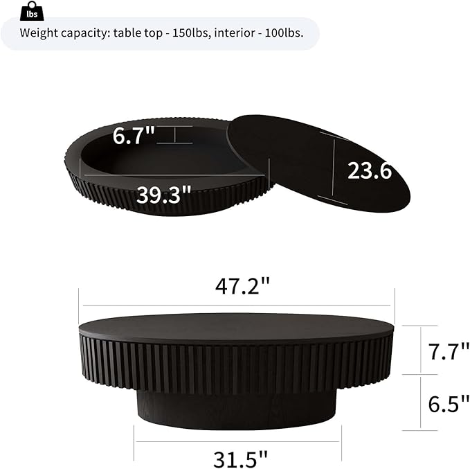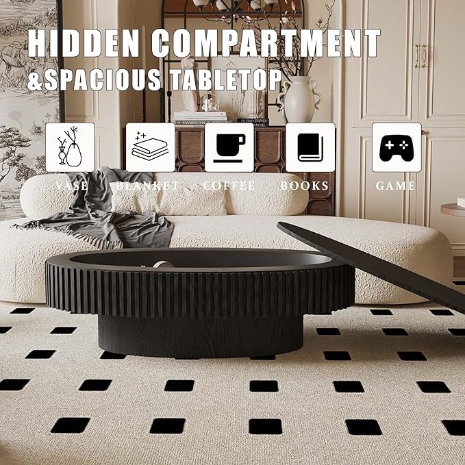 - HIDDEN STORAGE FOR ORGANIZED: This oval coffee table with storage includes a discreet compartment perfect for stashing remote controls, magazines, or throw blankets. Keep your space clutter-free while maintaining a polished, high-end look
