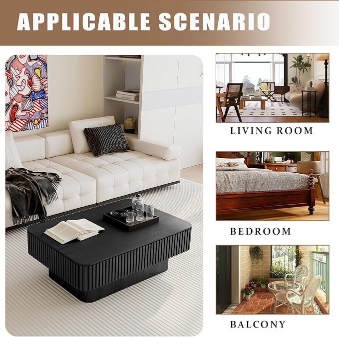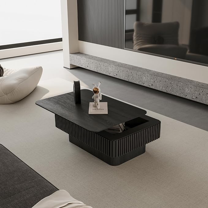 38.6" Lift Top Coffee Table with Storage, Fluted Coffee Table with Solid Wood Veneered, Mid Century Modern Wooden Center Table, Accent Tea Table for Living Room Apartment, Black