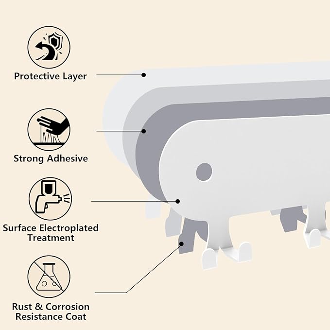 - 🗝️【Excellent Quality Control】The self adhesive key holder for wall is made of high-quality stainless steel, which is sturdy and thickened, not easy to deform, effectively prevents rust, corrosion and oxidation, and is scratch-resistant.