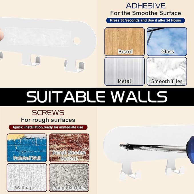 - 🗝️【Long Service Life】Our key holder wall mount adhesive has undergone multiple quality inspections and is not easily damaged by drop tests; it is safe and healthy to use in harsh environments; it deserves to be your ideal choice for storing items.