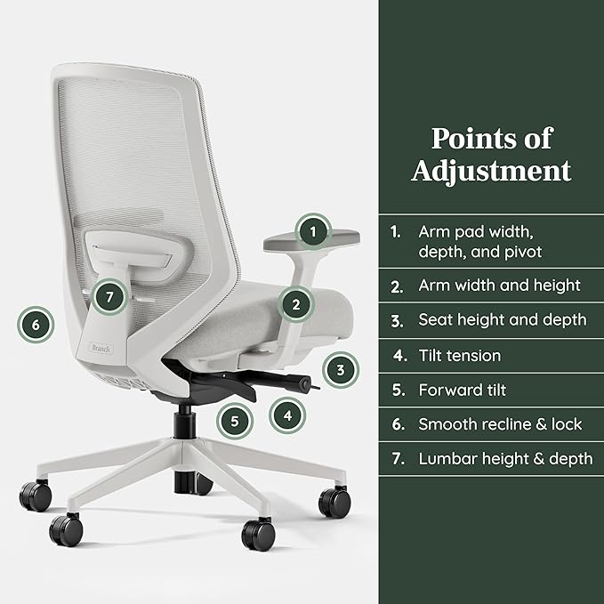 Branch Ergonomic Chair Pro - Mesh Office Chair with 14 Points of Adjustment - Height, Depth & Tilt Adjustable - 5D Armrests - Forward Tilt, Smooth Recline, and Lumbar Support - Mineral
