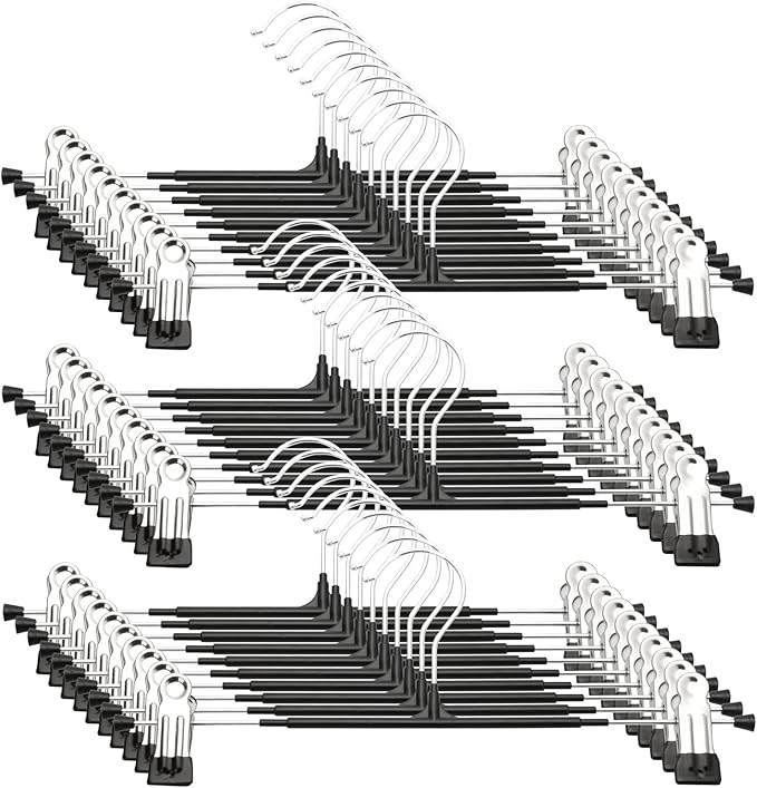 - Space-Saving Pants Hangers: Engineered with an ultra-thin yet heavy-duty design, these clip hangers maximize closet space and outperform bulkier wooden or plastic alternatives. They offer an effortless solution for keeping your wardrobe organized by securely holding pants, trousers, and more.