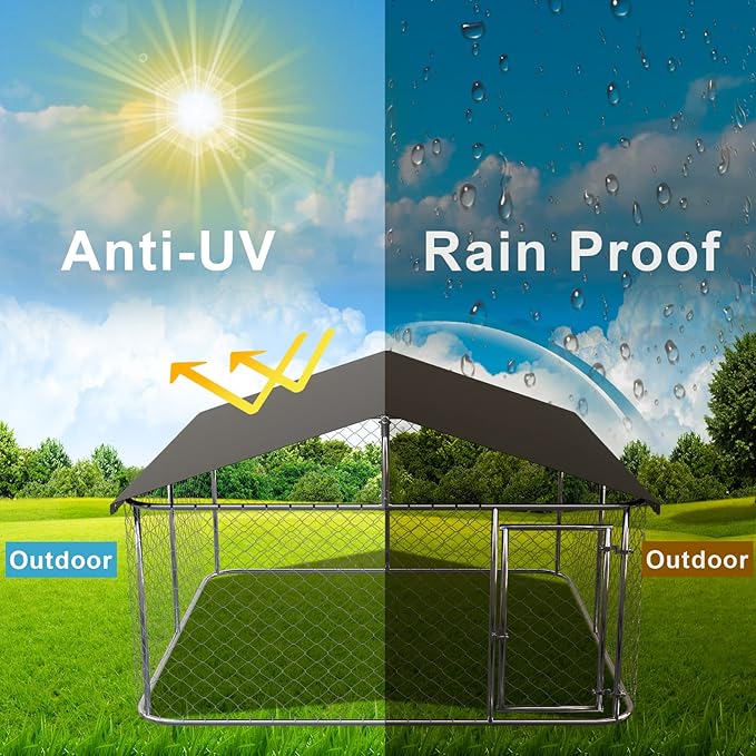 - Outdoor Play Experience:A canopy above the kennel allows your pet to enjoy the outdoors, whether on a hot sunny day or during rainy weather.