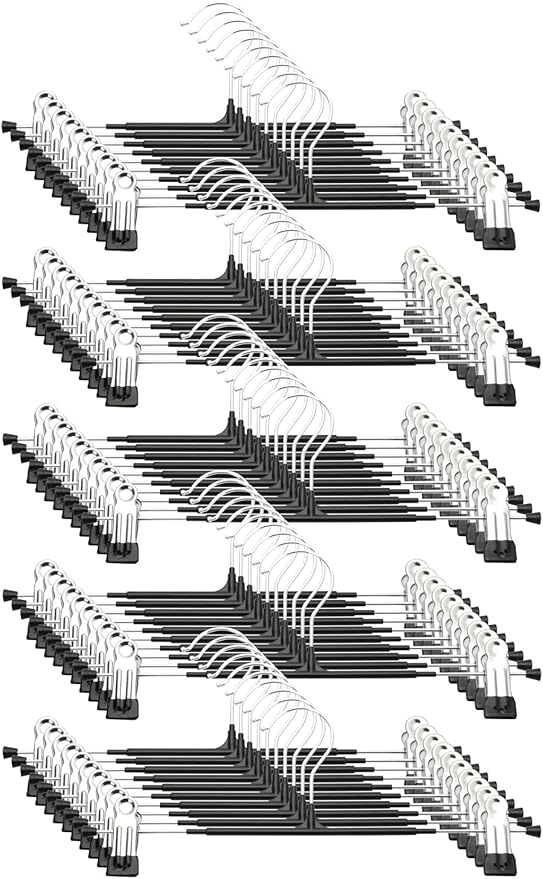 - Space-Saving Pants Hangers: Engineered with an ultra-thin yet heavy-duty design, these clip hangers maximize closet space and outperform bulkier wooden or plastic alternatives. They offer an effortless solution for keeping your wardrobe organized by securely holding pants, trousers, and more.