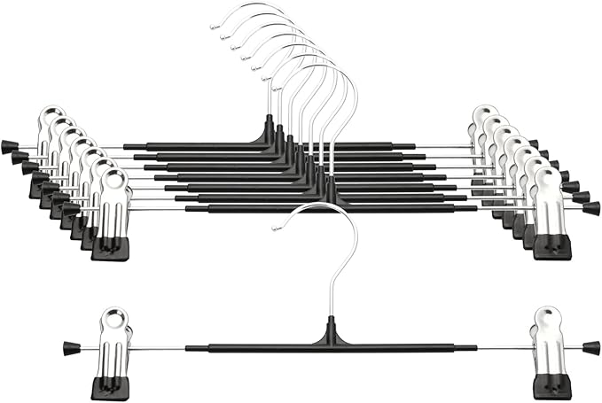 - Space-Saving Pants Hangers: Engineered with an ultra-thin yet heavy-duty design, these clip hangers maximize closet space and outperform bulkier wooden or plastic alternatives. They offer an effortless solution for keeping your wardrobe organized by securely holding pants, trousers, and more.