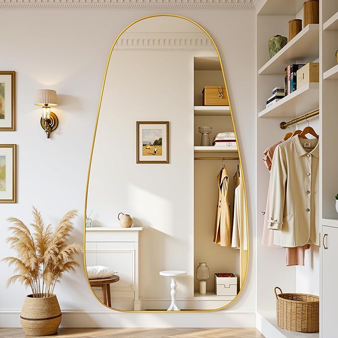 - Unique Decorative Features:The uniqueness of this unique shape full-length mirror with a aluminum frame makes it a versatile addition to any room to meet your various needs. You can hang it on the wall as a decorative mirror, place it on the floor for full body reflection, or even place it in a corner of the bedroom or living room as a decorative highlight, combining aesthetics with functionality.