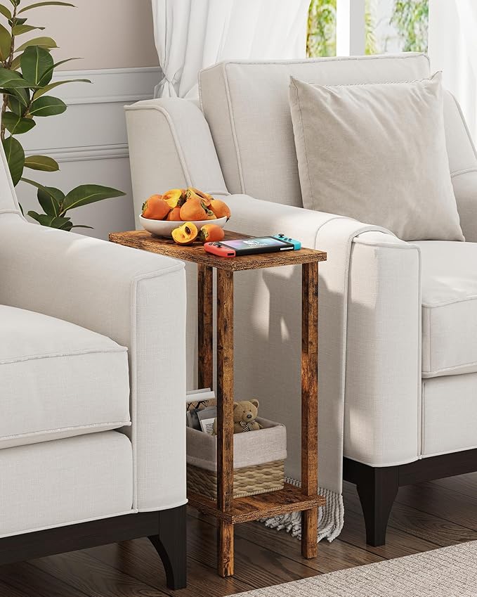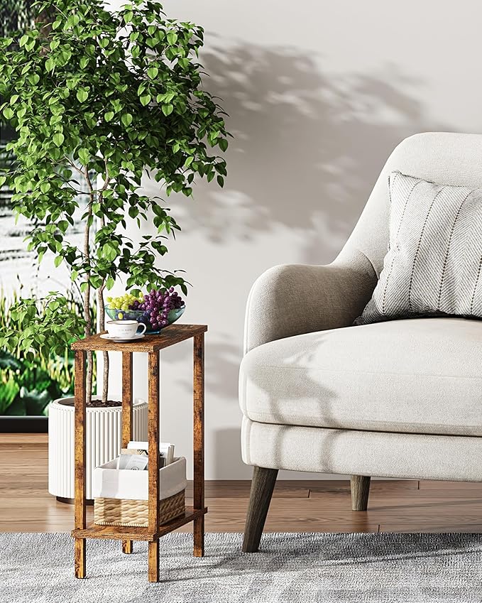 TUTOTAK Small Side Table, Narrow End Table, Skinny Sofa Table, Slim Nightstand, Couch Table, Living Room, Bed Room, Pure Brown TB01BB062C