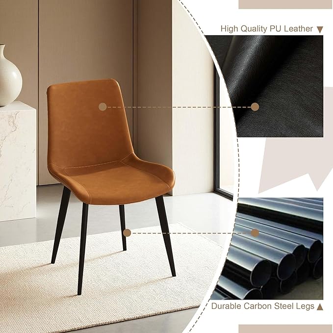 - Modern Faux Leather Dining Chairs: Designed with plush high-density foam cushions for superior comfort, supported by sturdy carbon steel legs. The seat height is 17.7 inches, making them ideal for standard dining tables.