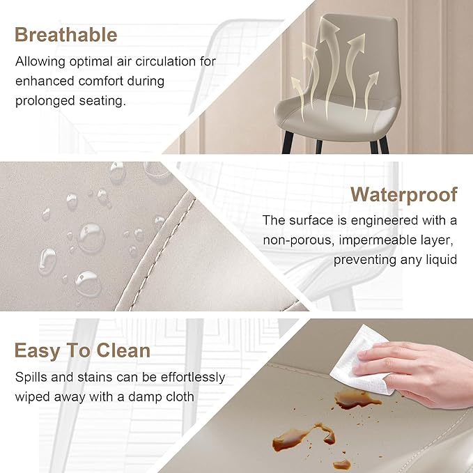 - Quick Assembly & Low Maintenance: Comes with all necessary tools and hardware—simply attach the legs to the seat. The water-resistant faux leather upholstery wipes clean effortlessly, making these faux leather dining room chairs ideal for busy households.