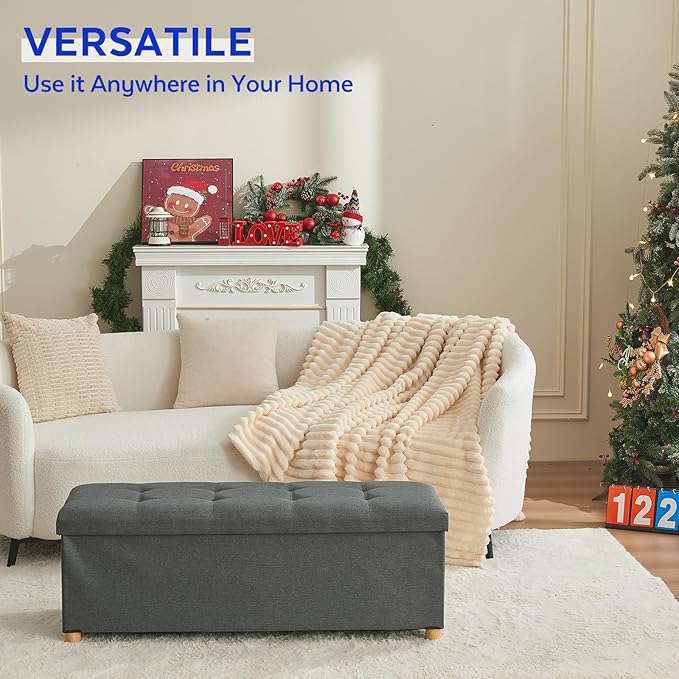 BRIAN & DANY 43 Inches Folding Storage Ottoman Bench, Ottoman with Storage Bench for Bedroom, Living Room, Entryway, Foot Rest with Legs, Dark Gery