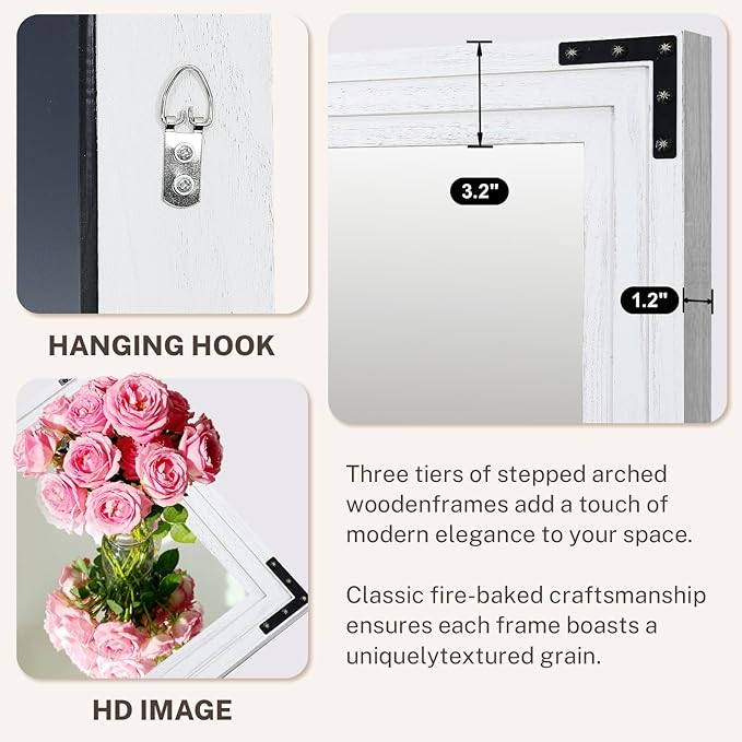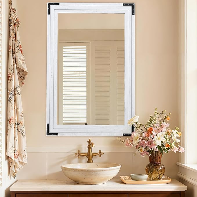 - Genuine Solid Wood Construction: Handmade with natural paulownia wood showcasing unique grains. This wood framed mirror embodies authentic farmhouse mirror charm.