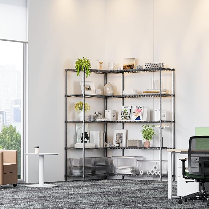 IZEUK Linked Storage Racks, DIY Adjustable Heavy Duty Metal Shelving Unit for Corner, Ideal for Kitchen, Garage, Warehouse, and Garden (Black, 15.7" D x 33.5" W x 70.5" H, 1433 lbs Capacity)