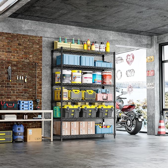 IZEUK 6-Tier Heavy Duty Metal Wire Shelving Unit, Adjustable Storage Rack Organizer for Garage, Kitchen, Office, Basement, Warehouse (Black, 17.7" D x 47.2" W x 82.7" H)