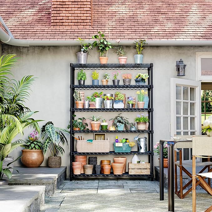 - 【Multi-Functional Storage – Perfect for Any Space】 Designed for versatility, this metal shelving unit is ideal for garages, storage rooms, balconies, gardens, and kitchens. Whether you’re organizing tools, gardening supplies, household items, or appliances, IZEUK shelves help keep everything tidy and make the most of your space.