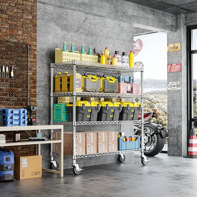 IZEUK 4-Tier Heavy Duty Metal Wire Shelving Unit, Adjustable Storage Rack Organizer for Garage, Kitchen, Office, Pantry, Warehouse (Chrome, 17.7" D x 47.2" W x 59.1" H)