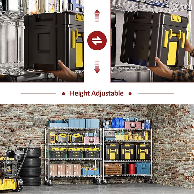 - 【Adjustable Shelves – Flexible for All Needs】 Customize your storage your way. Each shelf can be easily adjusted to fit items of different sizes — from bulky tools to compact kitchenware. This shelving unit adapts effortlessly to your needs, keeping your space organized and efficient.