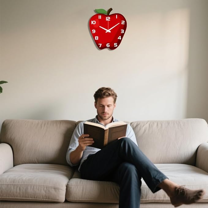 - Apple Pattern Design: This wall clock features a apple theme design that is simple and elegant intricate detailing beautiful images, and clean lines. Crafted with precision to add unique flair and artistic depth to your room