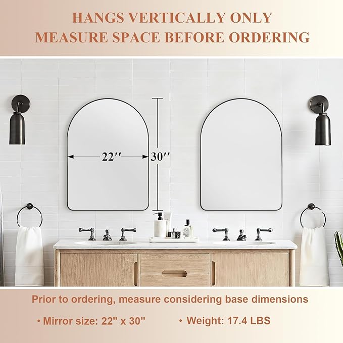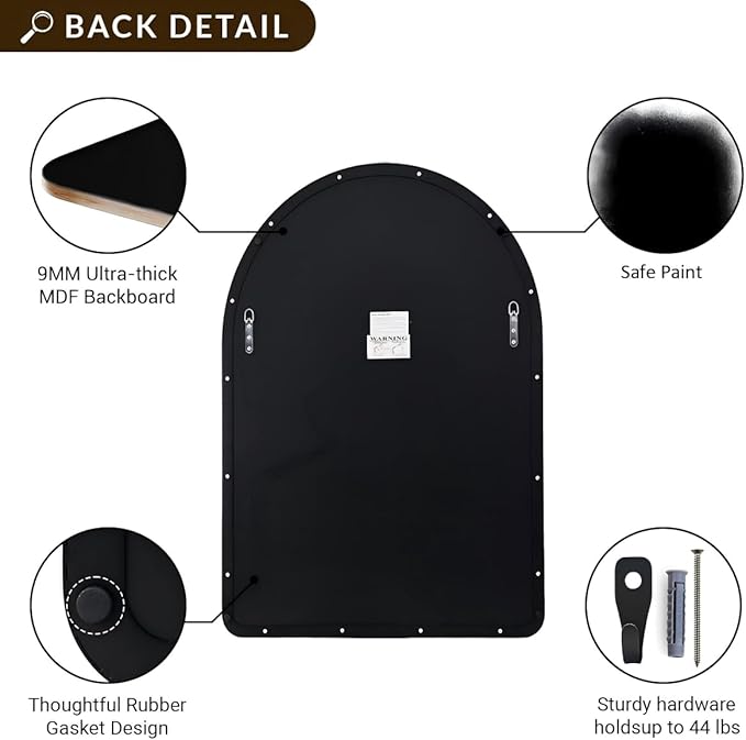 - Clear Reflection: Equipped with a 4mm ultra-clear glass surface, this arched mirror provides distortion-free reflections that make your grooming routine effortless; enjoy bright, crisp images that ensure you look polished at all times