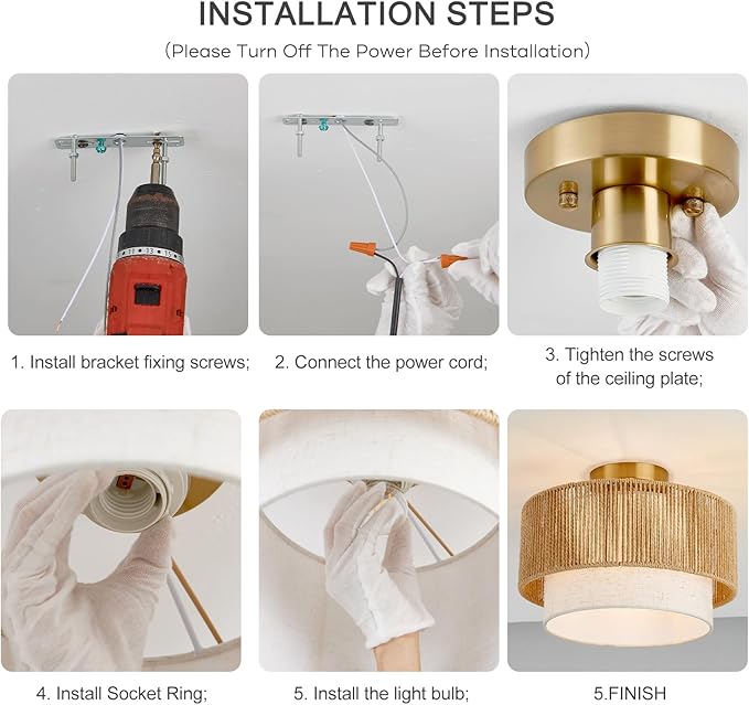 - [Bulbs Base]: Semi flush mount ceiling light with plug in cord need 1x E26 base bulb(Max.60W).( bulb not included).available incandescent, LED, or CFL bulb