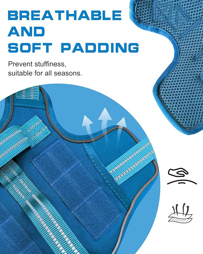 - Easy Control: The front metal leash ring is designed for no-pull control, making it perfect for training or dogs that frequently pull, while the rear ring is ideal for leisurely walks, jogging, or hiking. The dog harness features horizontal and vertical nylon handles for easy grip on your dog.
