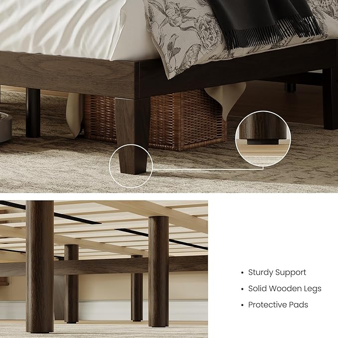 - [Exceptional Stability] Built with a low-profile solid wood structure, this bed frame offers outstanding stability and durability. Extra support legs (14 legs for CK, King, and Queen; 10 legs for Full) keep the frame steady, so you won’t hear squeaks or shakes when turning over at night. Strong enough to support up to 800 lbs.