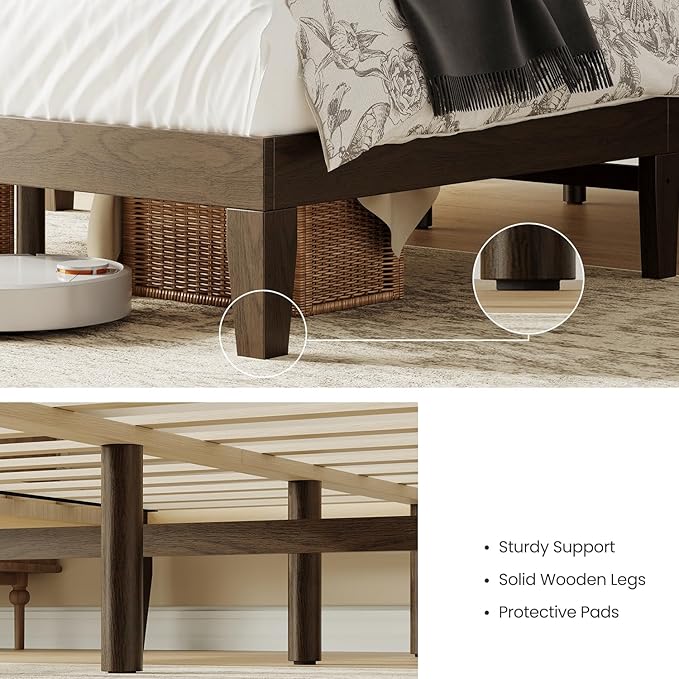- [Modern Design] Crafted with a natural solid wood frame, this bed frame features a sleek and simple style that adds a touch of elegance to your bedroom. The headboard-free design saves space, making it a perfect choice for small or modern rooms.