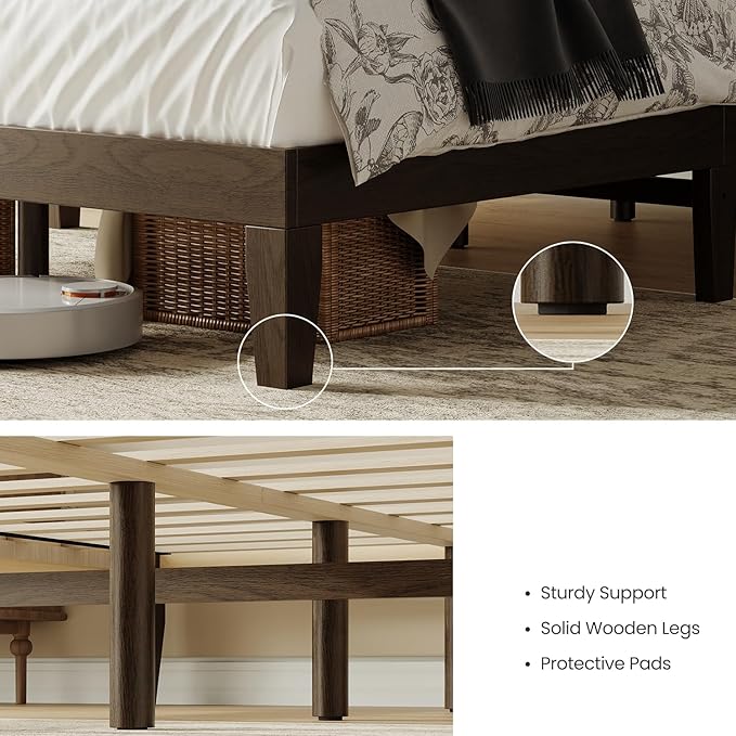 - [Modern Design] Crafted with a natural solid wood frame, this bed frame features a sleek and simple style that adds a touch of elegance to your bedroom. The headboard-free design saves space, making it a perfect choice for small or modern rooms.